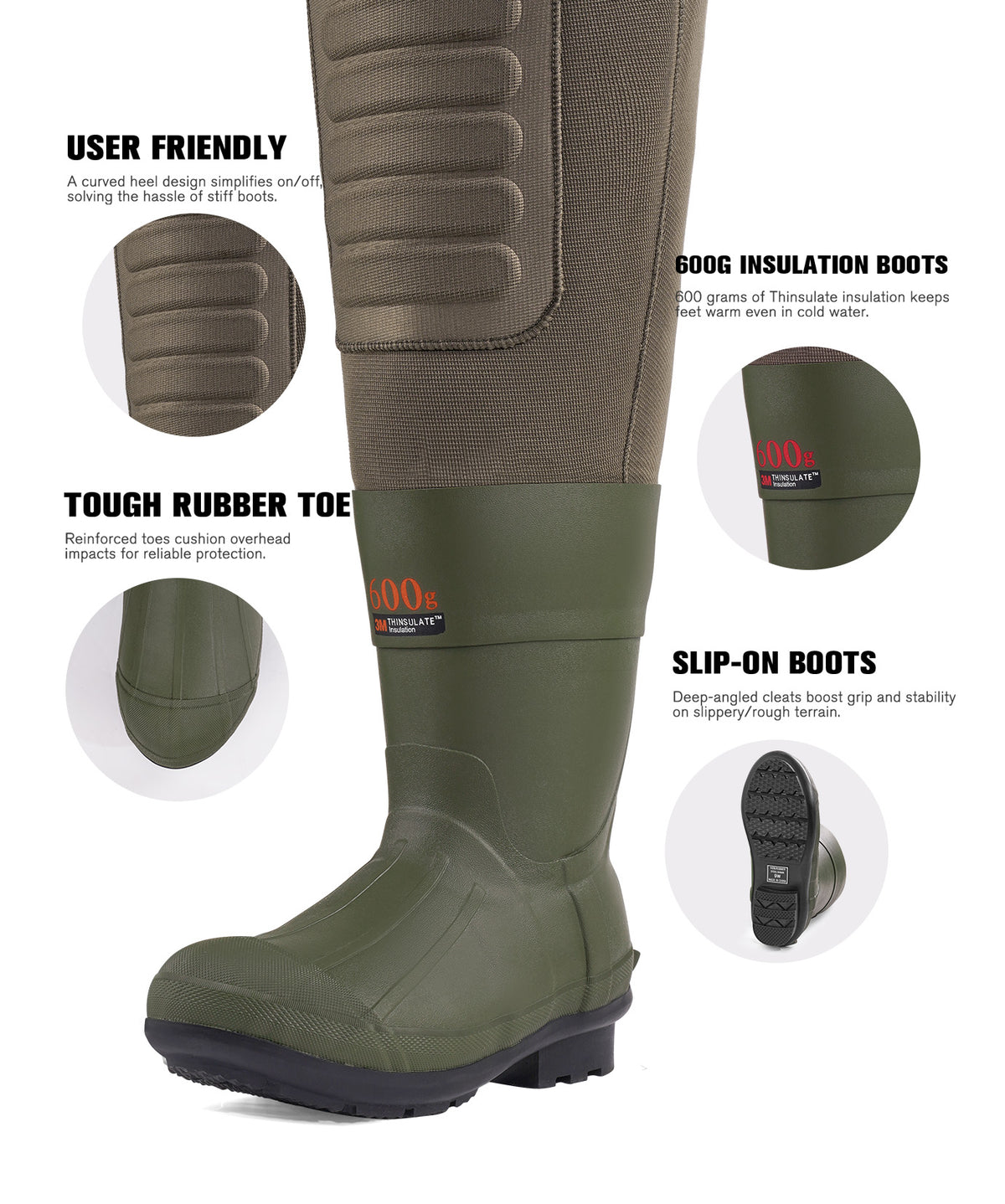 Yes. With reinforced knees, tear-resistant fabric, and anti-slip boots, they’re built to withstand mud, water, and tough terrain — perfect for active women who fish, hunt, or work outdoors.